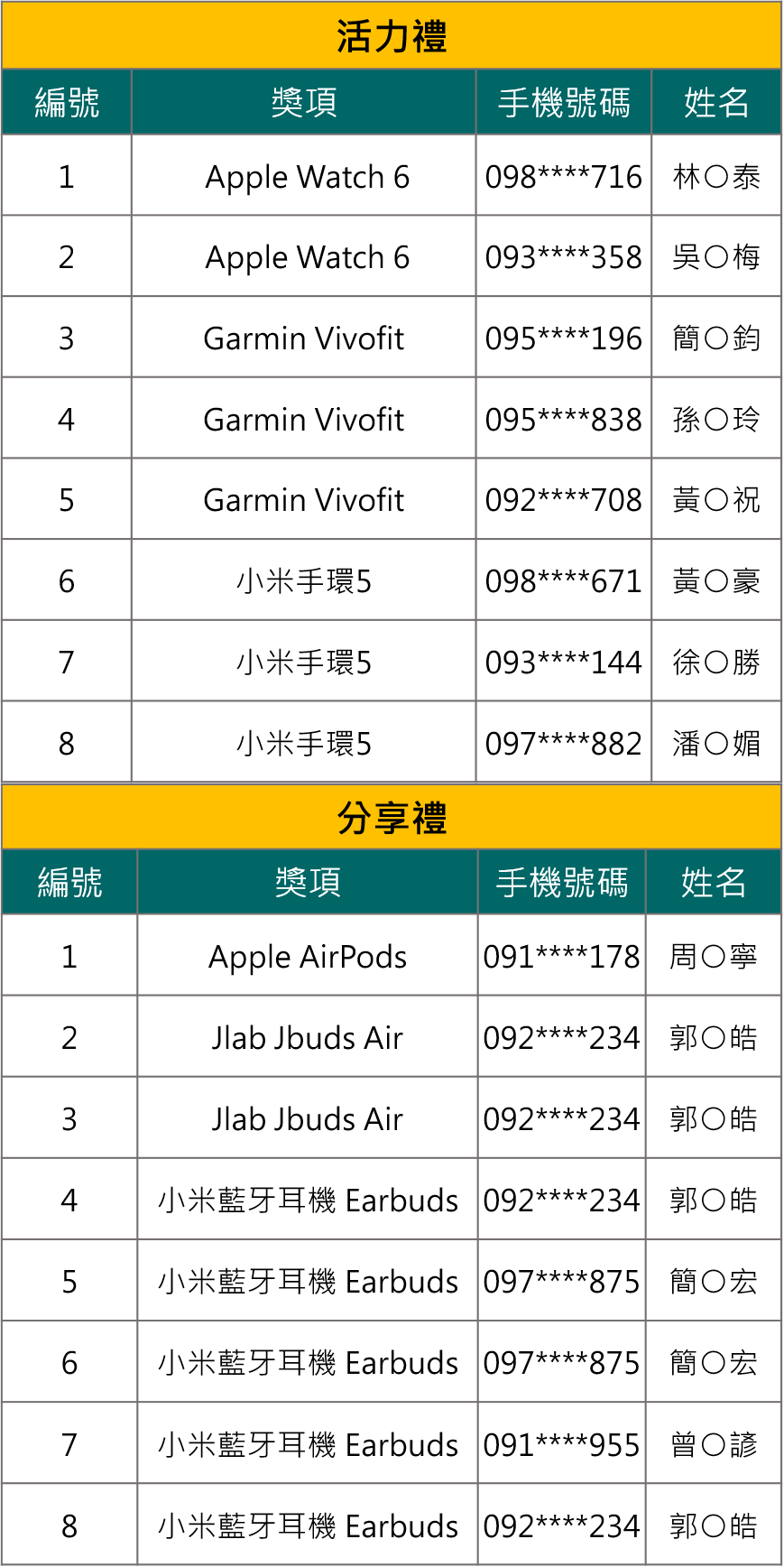 *中獎名單及內容請參考圖片。