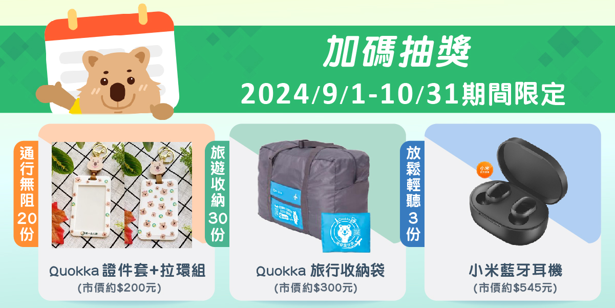 ▶ Quokka 旅行收納袋 (價值300元)(30份)