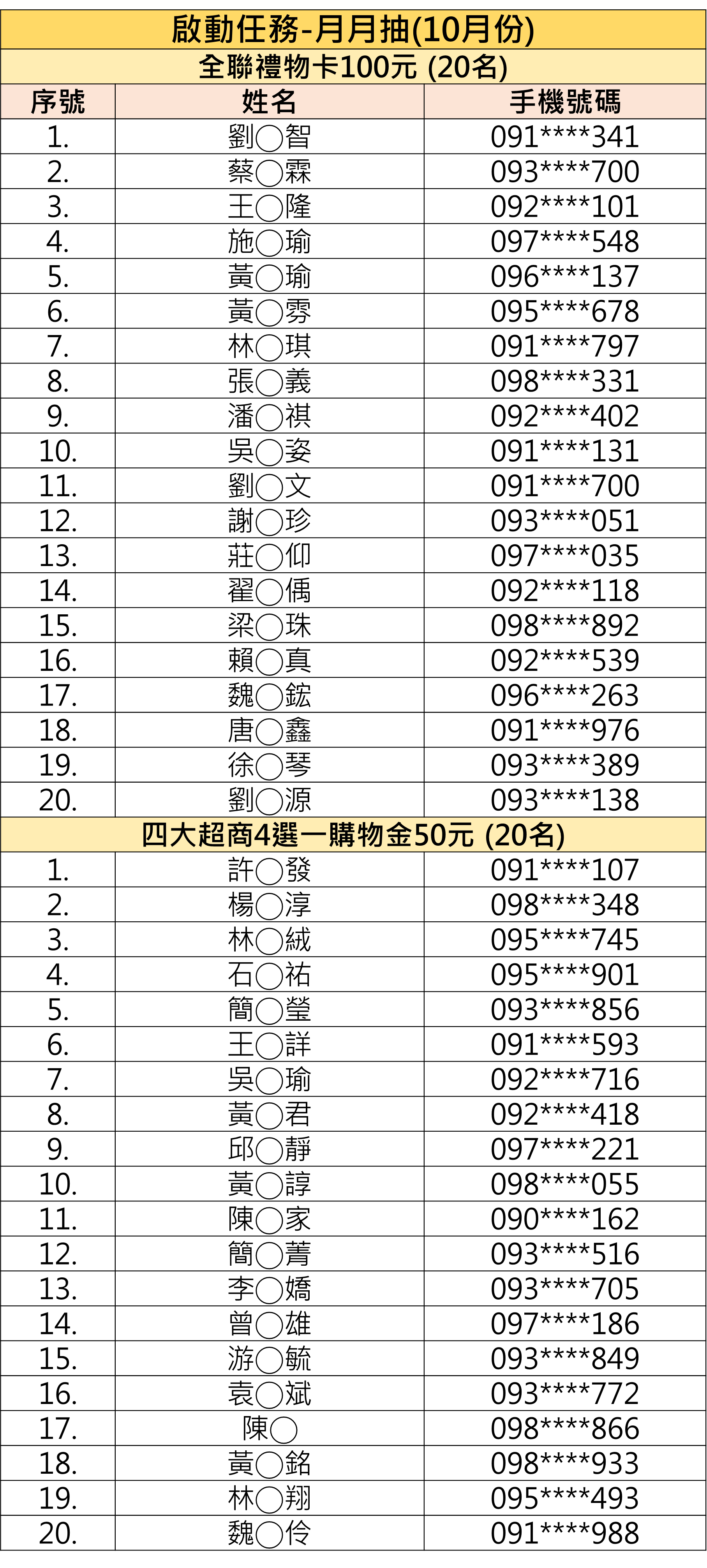 ⭐️啟動任務🎁月月抽【10月份】